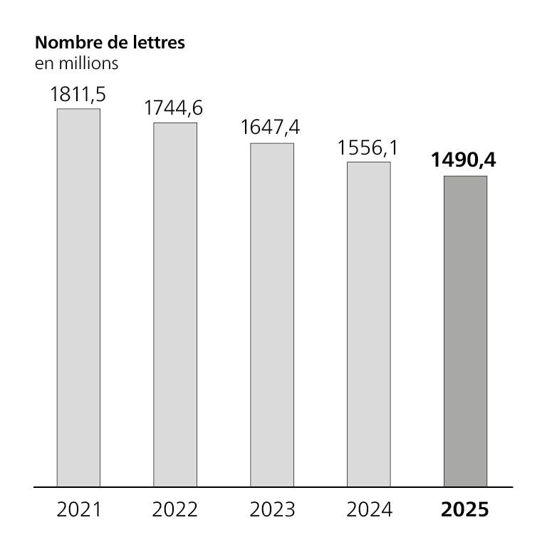 En 2025, la Poste a de nouveau fait preuve de fiabilité dans un environnement exigeant et a réalisé des progrès importants. Malgré un résultat à la baisse, mais solide, la nécessité d’agir s’en trouve accrue, notamment en raison du recul du marché du courrier et de la hausse des coûts.
